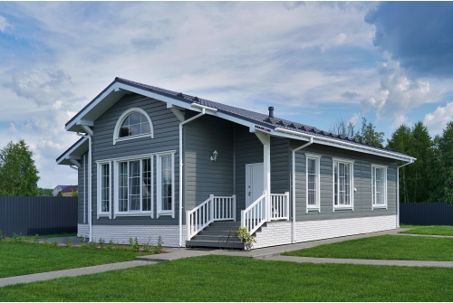 - В отличие от облицовки фасада деревом, металлический сайдинг «ЭкоБрус GL» прост в монтаже и не требует дополнительного послемонтажного ухода.