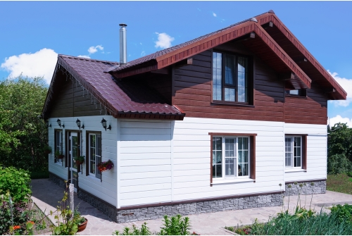 - В отличие от облицовки фасада деревом, металлический сайдинг «ЭкоБрус GL» прост в монтаже и не требует дополнительного послемонтажного ухода.