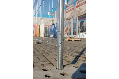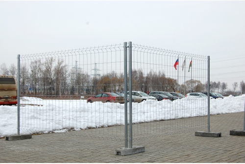 Основание бетонное обеспечивает высокую устойчивость конструкции временного ограждения.