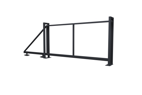 - Роликовая система (Alutech для откатных ворот), в которую входят: опоры роликовые 2шт, шина направляющая, ролик опорный, улавливатель нижний, улавливатель верхний, шина с поддерживающими роликами, подставка для роликовых опор 2шт, заглушка балки торцевая, анкерные болты.